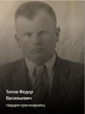 Средний сын Василия Титова — Фёдор Васильевич Титов (1914 — 1980) воевал в составе 18 гвардейского миномётного полка реактивных установок «Катюша». 16.02.1944 г. за обеспечение питанием НП под обстрелом врага старший повар — гвардии красноармеец Фёдор Титов награждён медалью «За боевые заслуги».