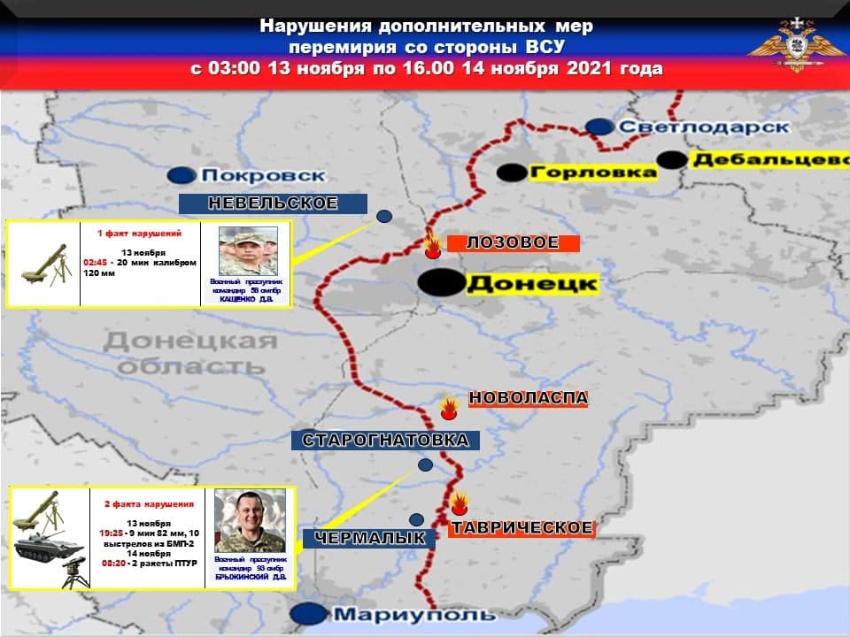За прошедшие сутки со стороны противника зафиксировано два нарушения Комплекса дополнительных мер по контролю за соблюдением режима прекращения огня.