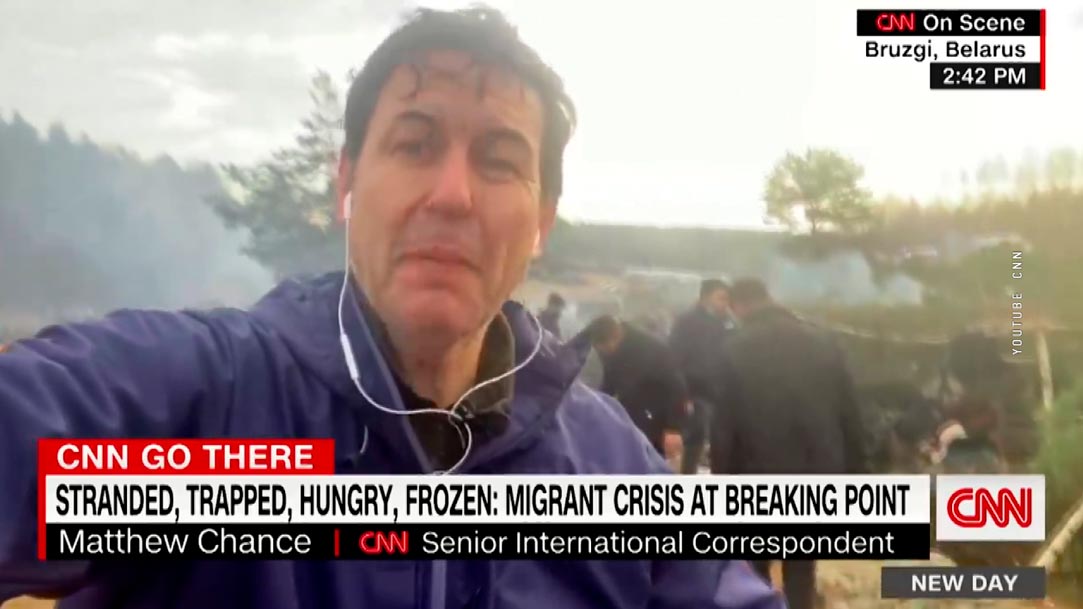 Известный британский корреспондент CNN Мэттью Чанс попал под водомёты и струи слезоточивого газа польских пограничников.