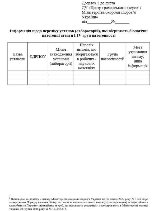 По приведенным материалам видно, что ГУ «Центр общественного здоровья Министерства здравоохранения Украины» в интересах «Агентства по уменьшению военной угрозы» МО США (DTRA) запрашивает сведения о работах с микроорганизмами 1 и 2-й степени патогенности у Львовского НИИ эпидемиологии и гигиены.