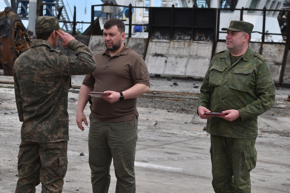В ходе рабочей поездки в освобожденный Мариуполь Глава Донецкой Народной Республики Денис Пушилин на территории морского торгового порта провел награждение военнослужащих 5-й отдельной Донецкой мотострелковой тяжелой бригады имени А.В. Захарченко.