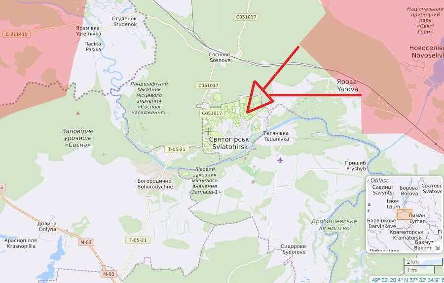 Только что стало известно, что подразделения Армии России начинают штурм Святогорска на севере ДНР. Город находится в 4 км от административной границы Харьковской области.