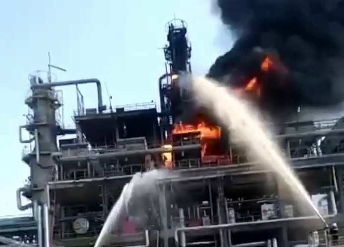 Первый удар был нанесён по технологическому оборудованию установки по переработке нефти, произошла разгерметизация аппаратов воздушного охлаждения и выброс углеводородного газа, сопровождаемый взрывом и распространением огня на находящееся рядом оборудование.