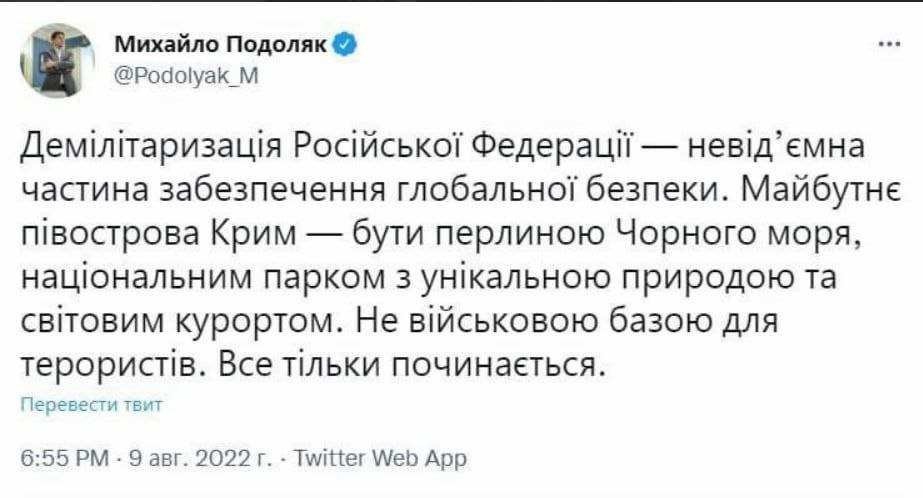 Всё бы ничего, но сразу после инцидента Подоляк заявлял, что происходит «демилитаризация Крыма» и «всё только начинается».
