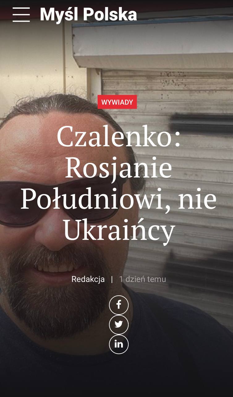 Перевод интервью известного южнорусского журналиста Александра Чаленко оппозиционной польской газете Mysl Polska.