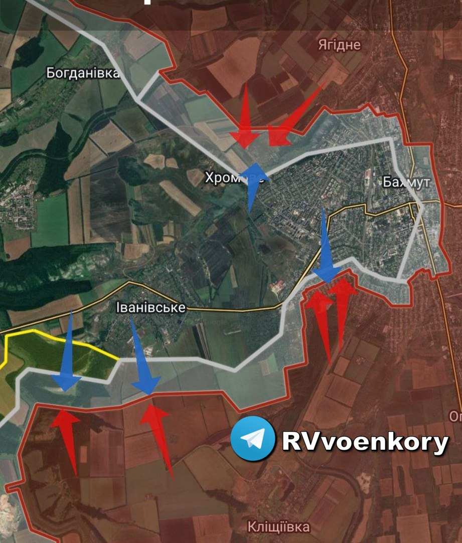 Севернее Бахмута ЧВК «Вагнер» ведёт активное наступление на посёлок Хромово с двух направлений.