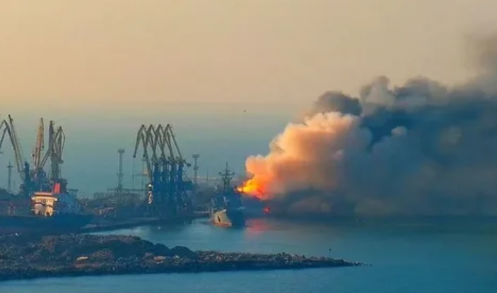 24 марта 2022 г. в порту Бердянска (Запорожская обл.) произошёл пожар в результате удара ВСУ ракетами «Точка-У». Загорелся резервуар с топливом и стоящий рядом БДК «Саратов».