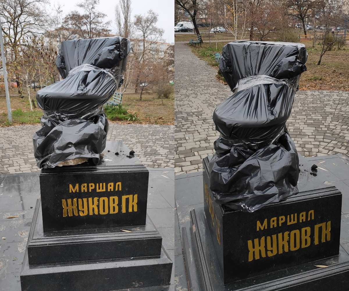 После дня освобождения Одессы от фашистов девушка решила восстановить памятник советскому полководцу Георгию Жукову и наклеила на постамент его фамилию и инициалы.