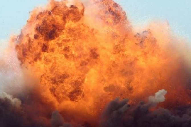 Слышен мощный свист, и потом через существенный промежуток времени видна вздыбленная взрывом земля. Похоже, что взрыв произошел после ухода бомбы/ракеты глубоко под землю.
