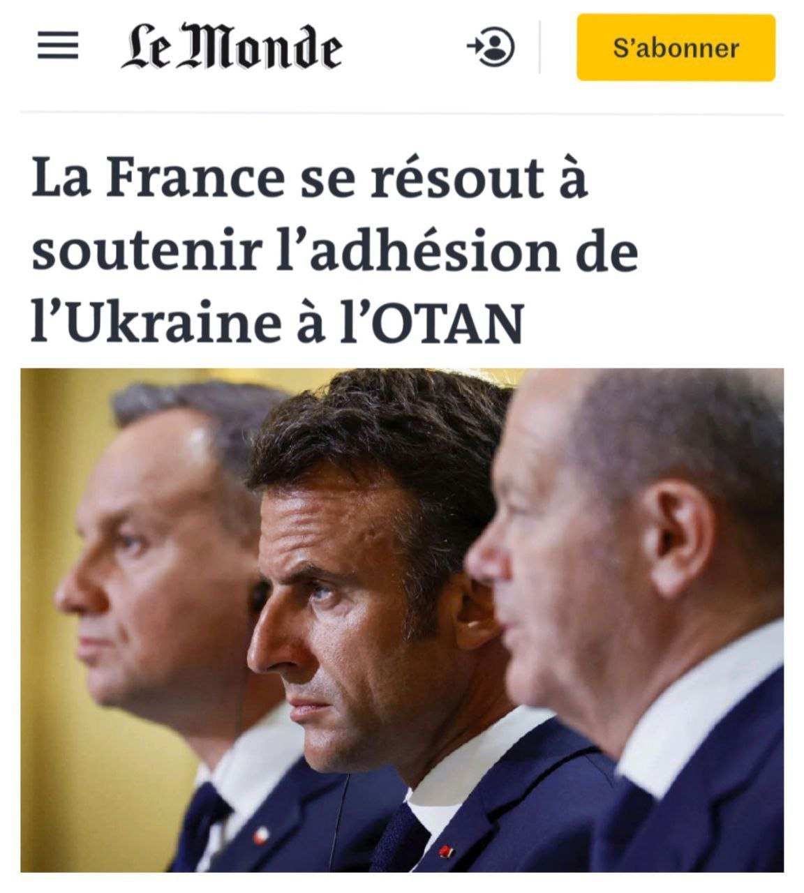 «Франция намерена поддержать вступление Украины в НАТО» — статья с таким заголовком вышла во французском издании Le Monde.