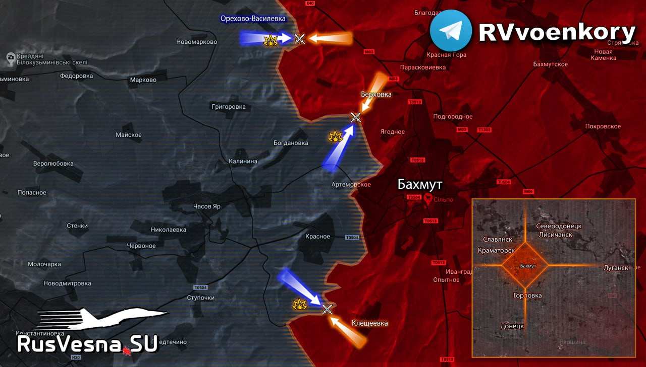Бронегруппы ВСУ продолжают наступление с нескольких направлений, мечтая взять Артёмовск (Бахмут) в клещи.