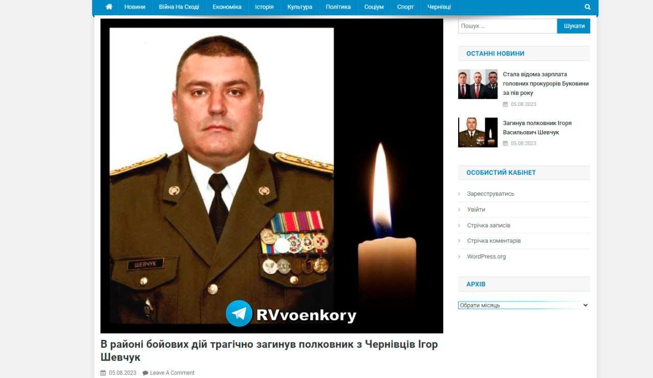 С 2022 полковник Игорь Шевчук, 1980 г. р., находился в должности замначальника черновицкого областного военкома, пишут украинские СМИ.