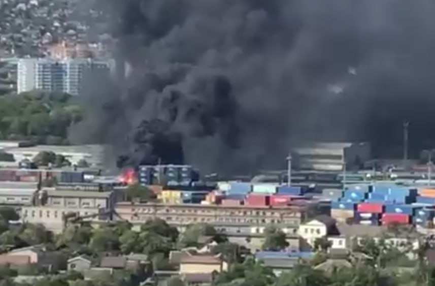Сильный пожар в грузовом терминале Новороссийска (ФОТО)