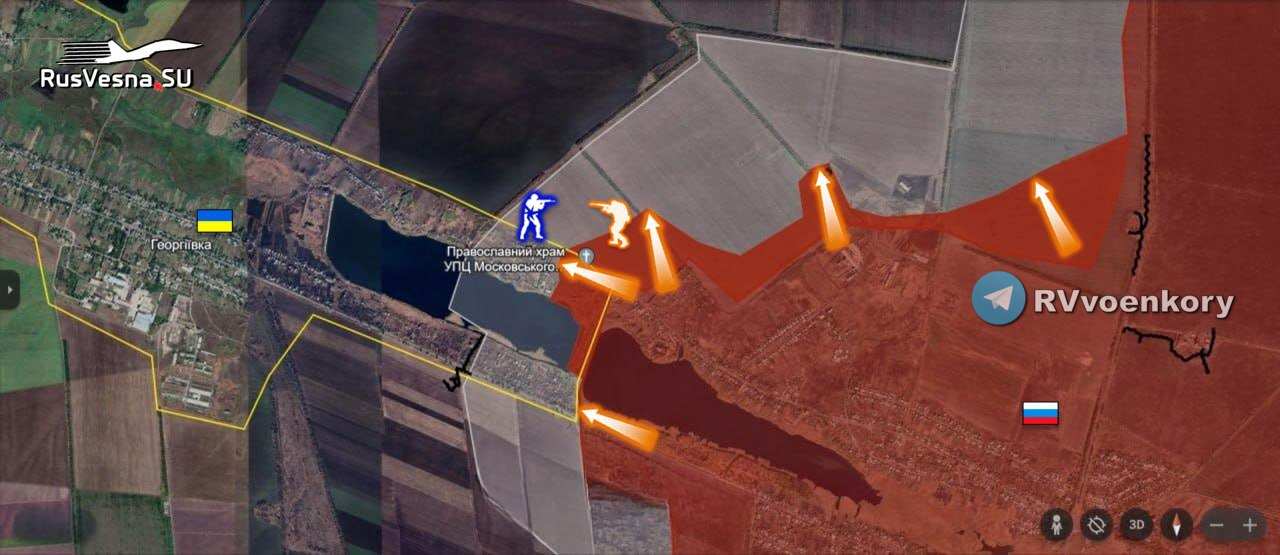 «В восточных окрестностях северной части села ВС РФ заняли Православный храм УПЦ МП и еще несколько домов. Также имеют успехи (продвижение) и восточнее в ряде посадок», — вторят им киевские военные аналитики.