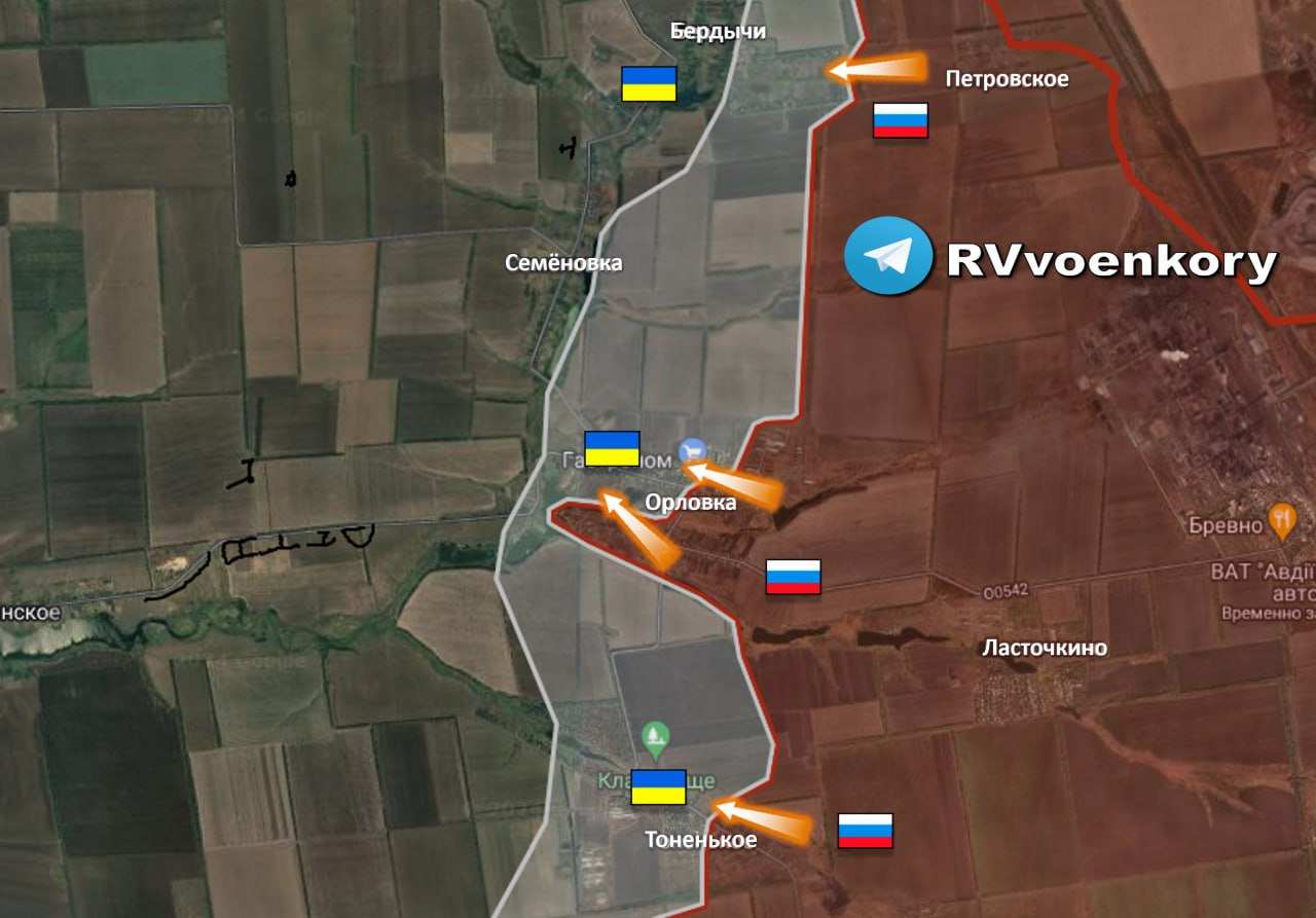 «Отважные» штурмуют Орловку, Тоненькое и Бердычи за Авдеевкой, идут тяжёлые бои (КАРТА)