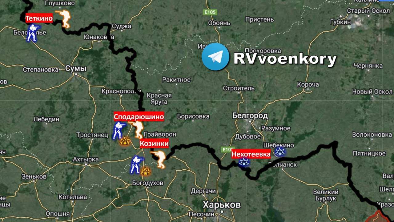 Основные усилия враг все также сосредотачивает в Белгородской области. Идут лобовые атаки на Сподарюшино и Козинку, а также попытки небольшими группами пройти через лесополосы в Грайворонском округе.