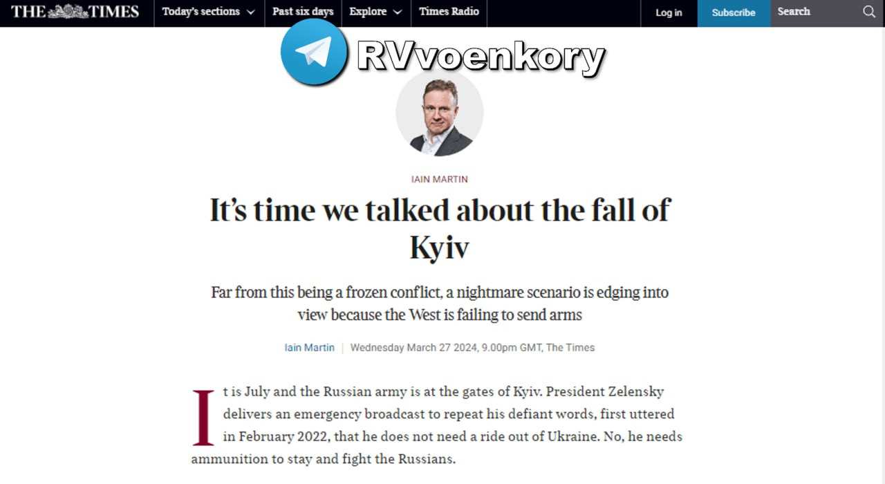 Шотландский колумнист Иэн Мартин в своем материале для The Times предрекает падение Киева уже к лету этого года в случае отсутствия поставок вооружения и боеприпасов со стороны Запада.