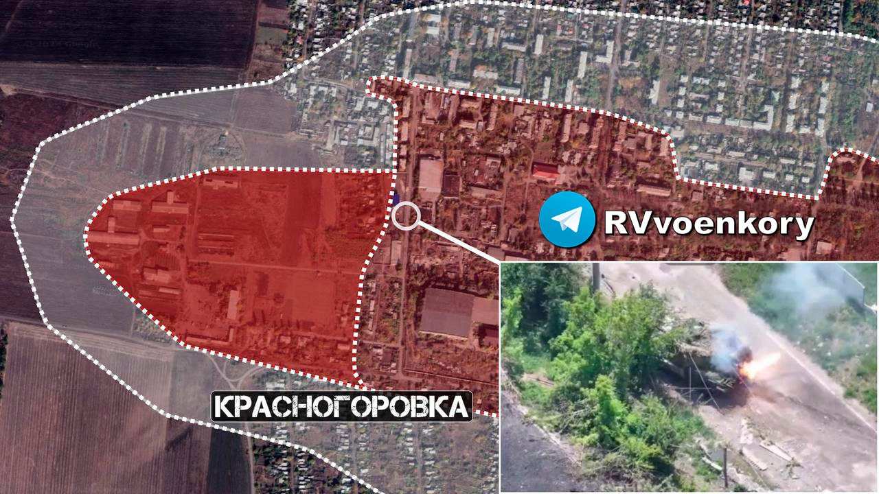 На кураховском направлении российские войска при поддержке бронетехники продолжает штурмовые действия в Красногоровке. Под контроль ВС РФ перешла улица Фермерская и территория складов на западной окраине на участке шириной до 450 м на глубину до 630 м.