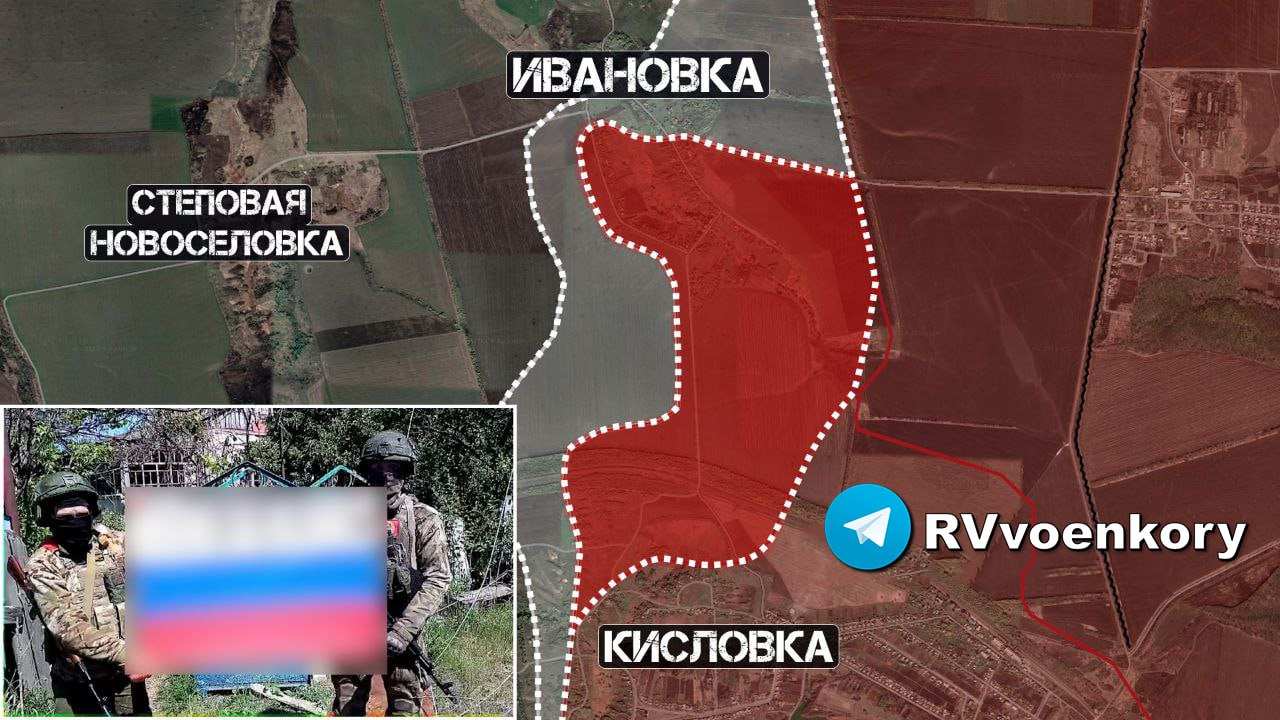 ► На купянско-сватовском участке ВС РФ заняли южную и центральную части Ивановки и продвинулись вдоль железной дороги севернее Кисловки на участке шириной до 2 км на глубину до 1.37 км.