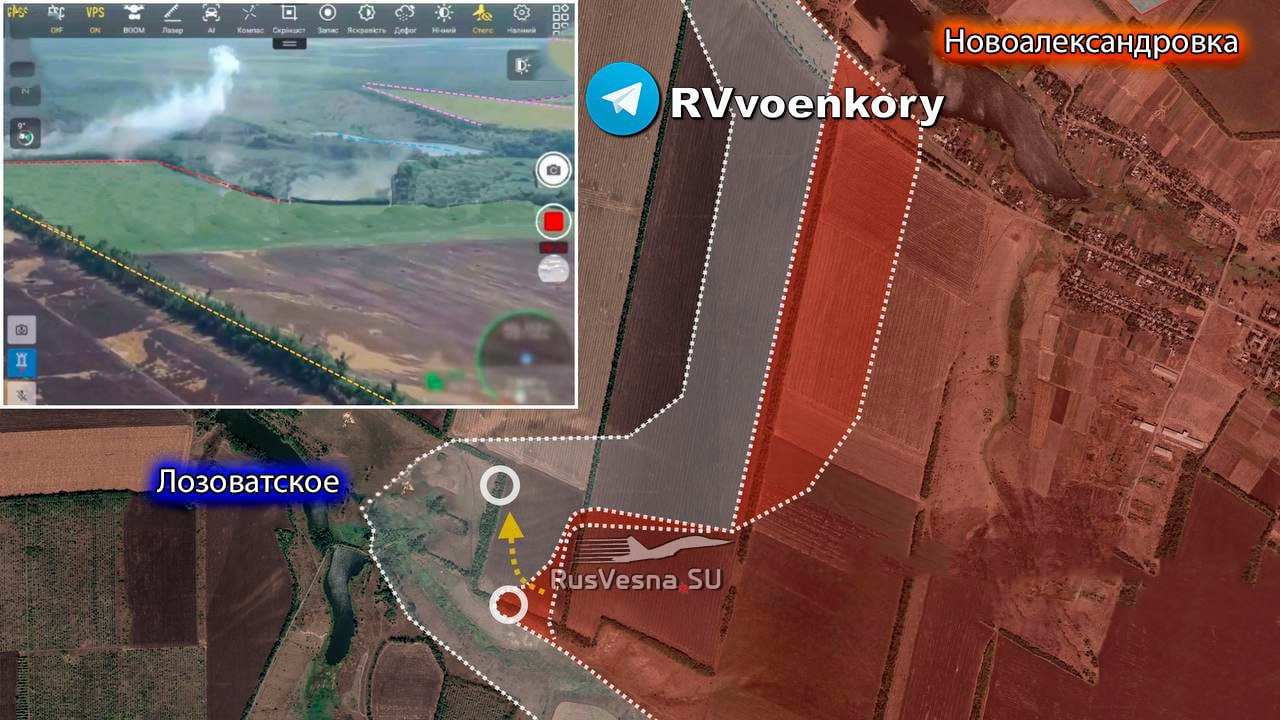 «На восточной окраине Лозоватского российские войска при поддержке бронетехники продолжают штурмовые действия вдоль лесополос в направлении посёлка», — писали они.