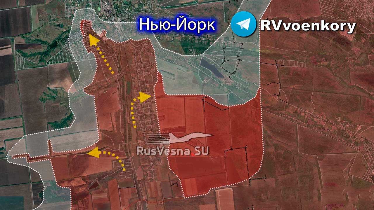 Украинские войска бежали с позиций к востоку от Нью-Йорка. Территория перешла под контроль Армии России, это признают и украинские военные пропагандисты, публикующие свежие карты оперативной обстановки.