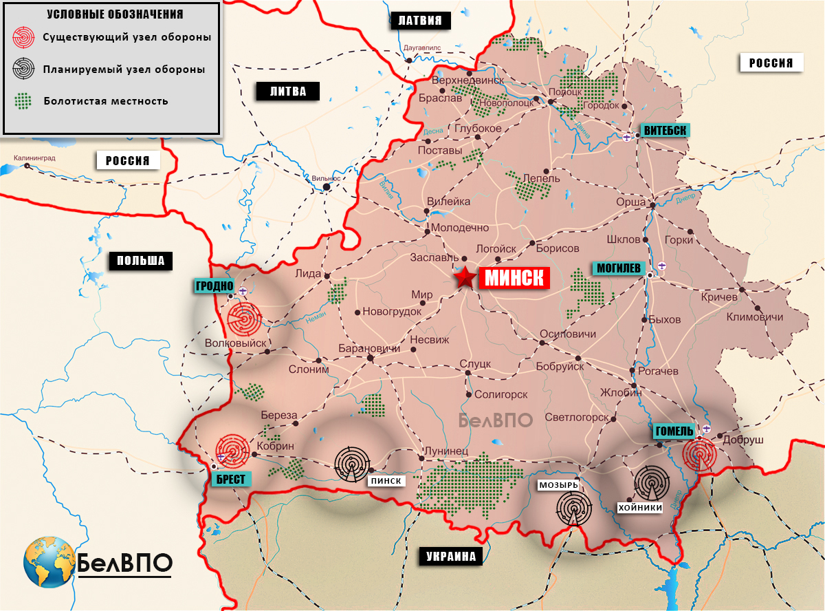 Потенциальными узлами, с высокой степенью вероятности, станут Пинское, Мозырское и Хойниковское направления, где уже ведется оборудование местности в инженерном отношении.