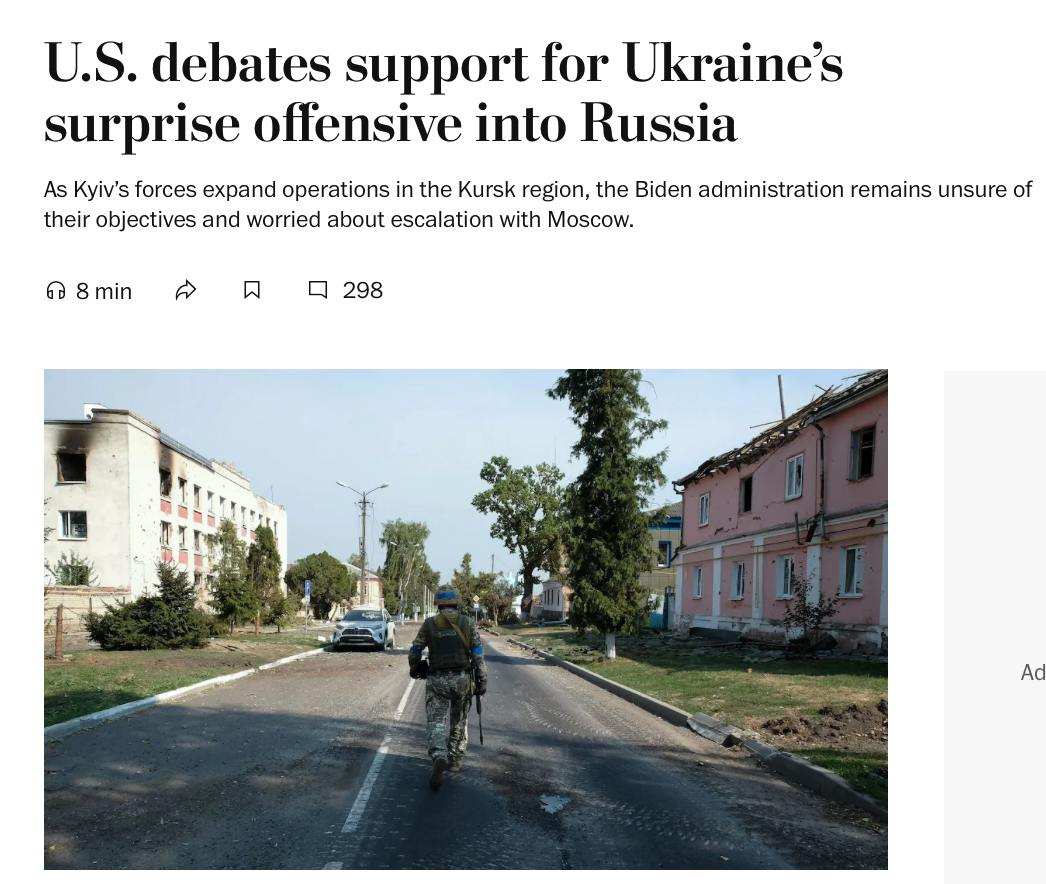 Администрация Байдена обсуждает, следует ли помочь Украине удержать и расширить захваченные территории в Курской области.