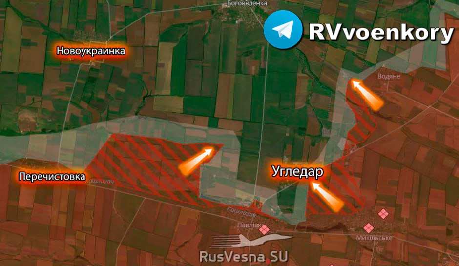 Российские подразделения стремительно продвигаются из района недавно освобождённой Пречистовки севернее реки Кашлагач в восточном и северо-восточном направлениях, прорываясь в лесополосы западнее Угледара с целью последующего удара на север, то есть перерезая логистику.
