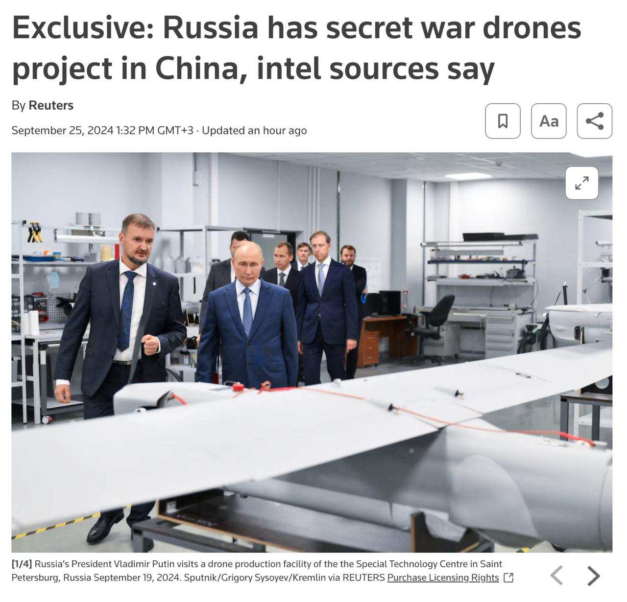 Россия запустила в Китае программу производства дальнобойных беспилотников для ударов по Украине, сообщает Reuters со ссылкой на источники и полученные документы.