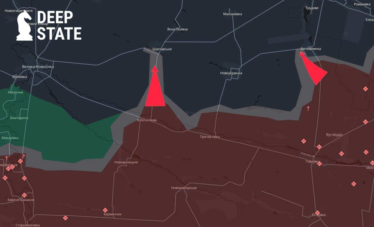 Армия России прорвалась на 8 км на линии Шахтерское — Богоявленка — DeepState (КАРТА)