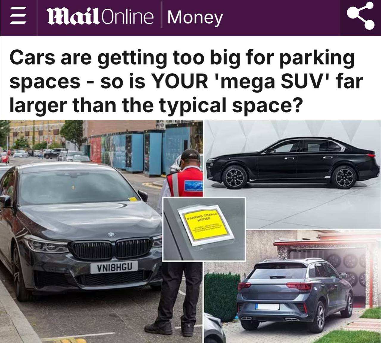 Новые автомобили стали настолько раздутыми, что половина из них слишком широка, чтобы поместиться на стандартных парковочных местах.