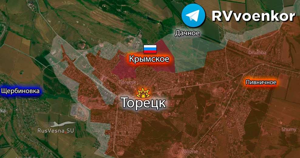 Минобороны в свежей сводке сообщило об освобождении н. п. Крымское под Торецком (Дзержинском).