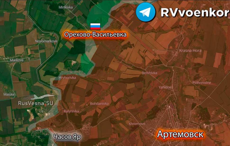 «В результате решительных наступательных действий на северском направлении подразделений группировки войск „Юг” освобожден населенный пункт Орехово-Васильевка к северу от Артемовска», — сказано в заявлении ведомства.