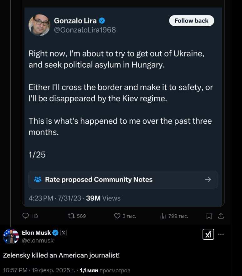 Илон Маск заявил, что главарь киевского режима Зеленский убил американского журналиста.