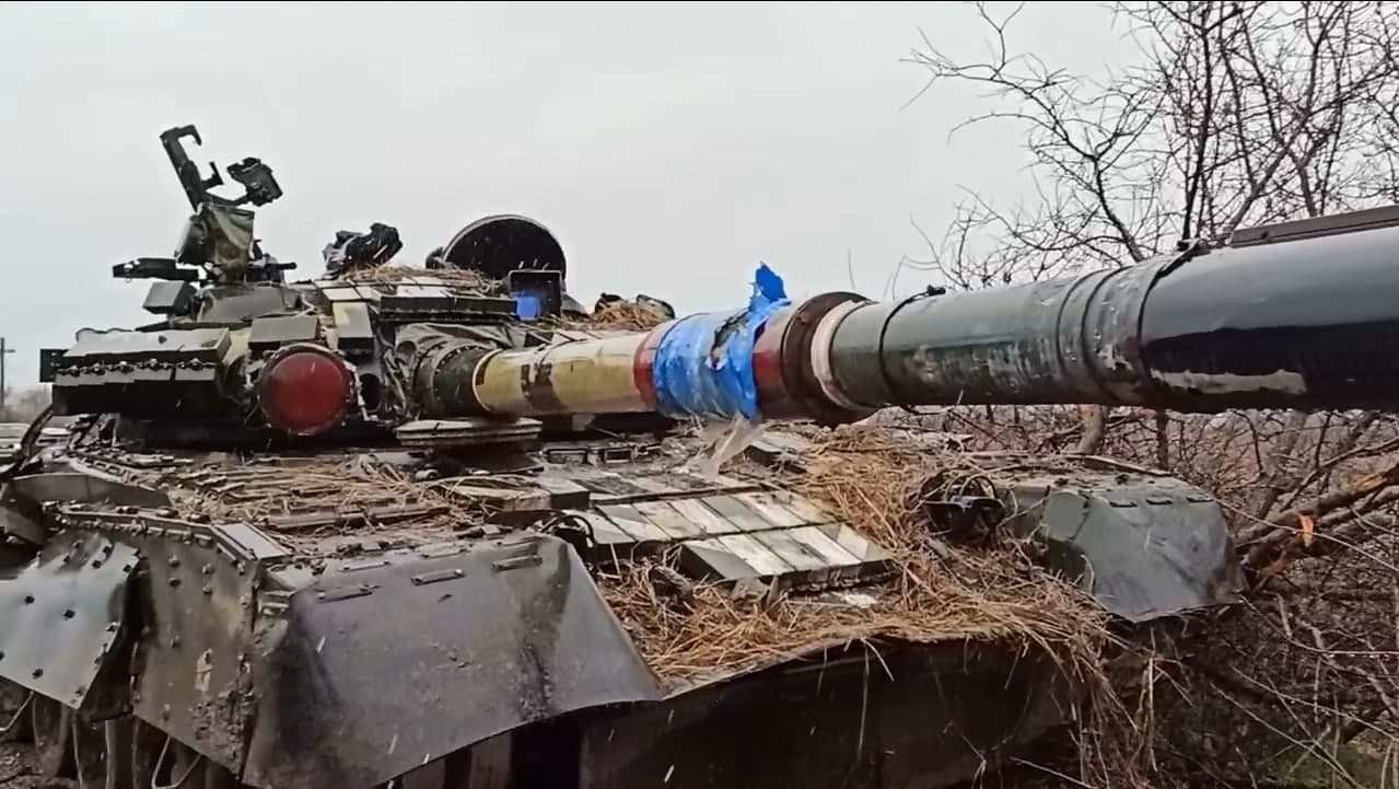 ► замаскированный в лесополосе танк ВСУ;