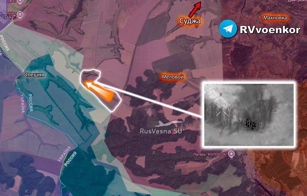 В пока еще удерживаемом врагом куске Курского приграничья продолжается наступление российских войск севернее и восточнее Олешни.