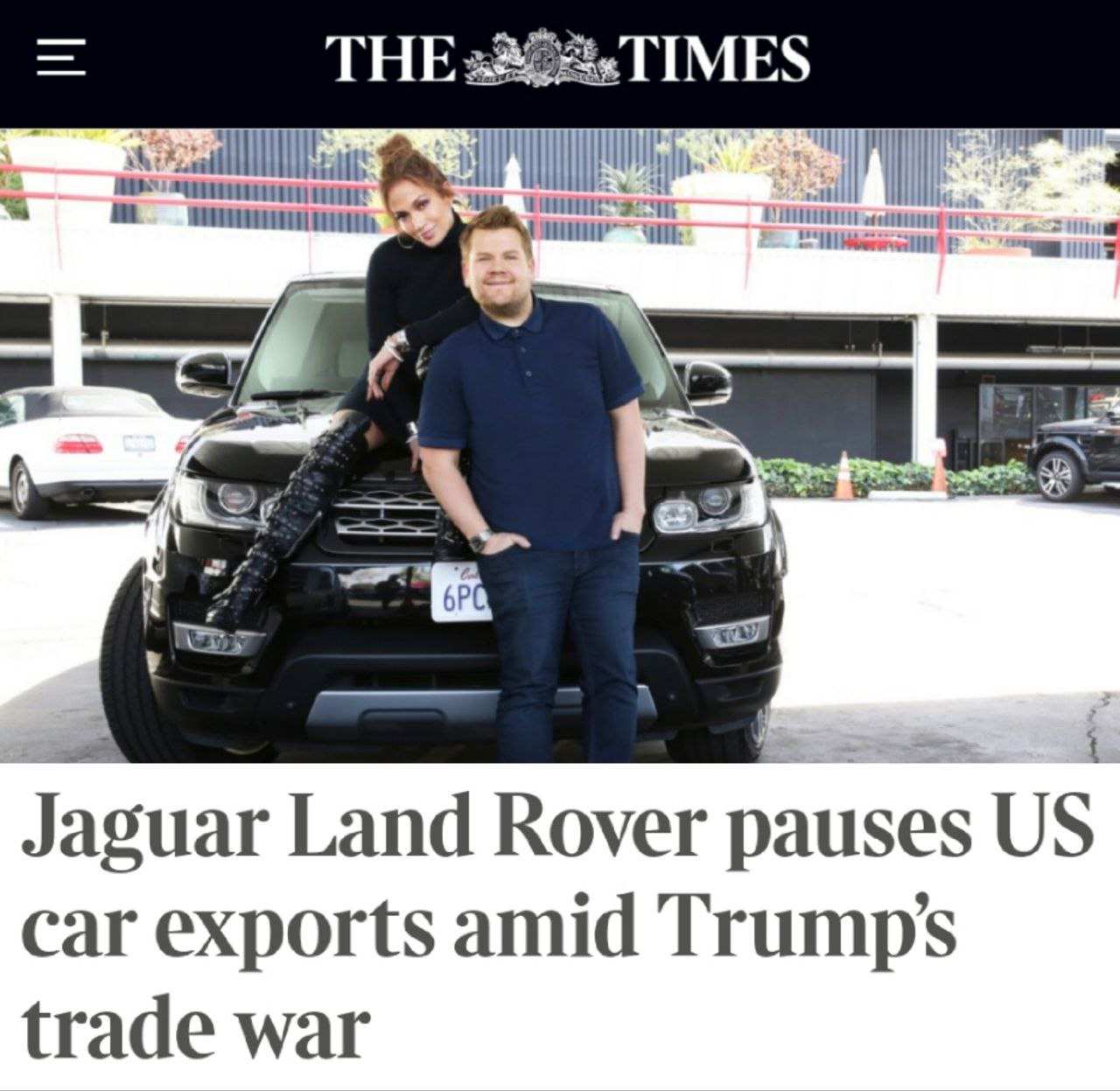 «Jaguar Land Rover приостанавливает экспорт автомобилей в США на фоне глобальной торговой войны Трампа»: Началось — первая европейская компания объявила об уходе с американского рынка.