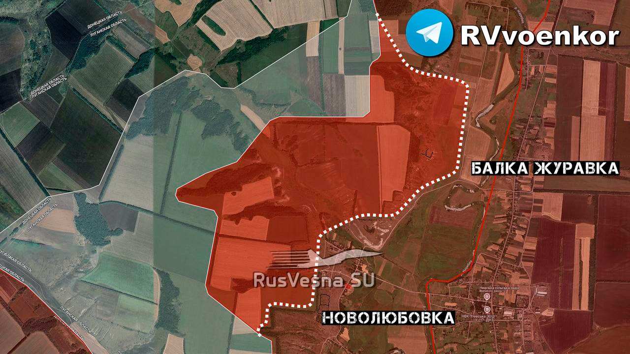 На лиманском направлении российские войска закрепились западнее Балки Журавки и Новолюбовки на участке шириной до 3.5 км на глубину до 1.72 км, продолжают давить в западном направлении с целью укрепить фланг выступа, утверждают вражеские аналитики.