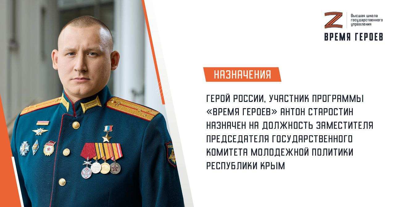 Герой России из «Времени героев» назначен зампредом государственного комитета молодежной политики Республики Крым.