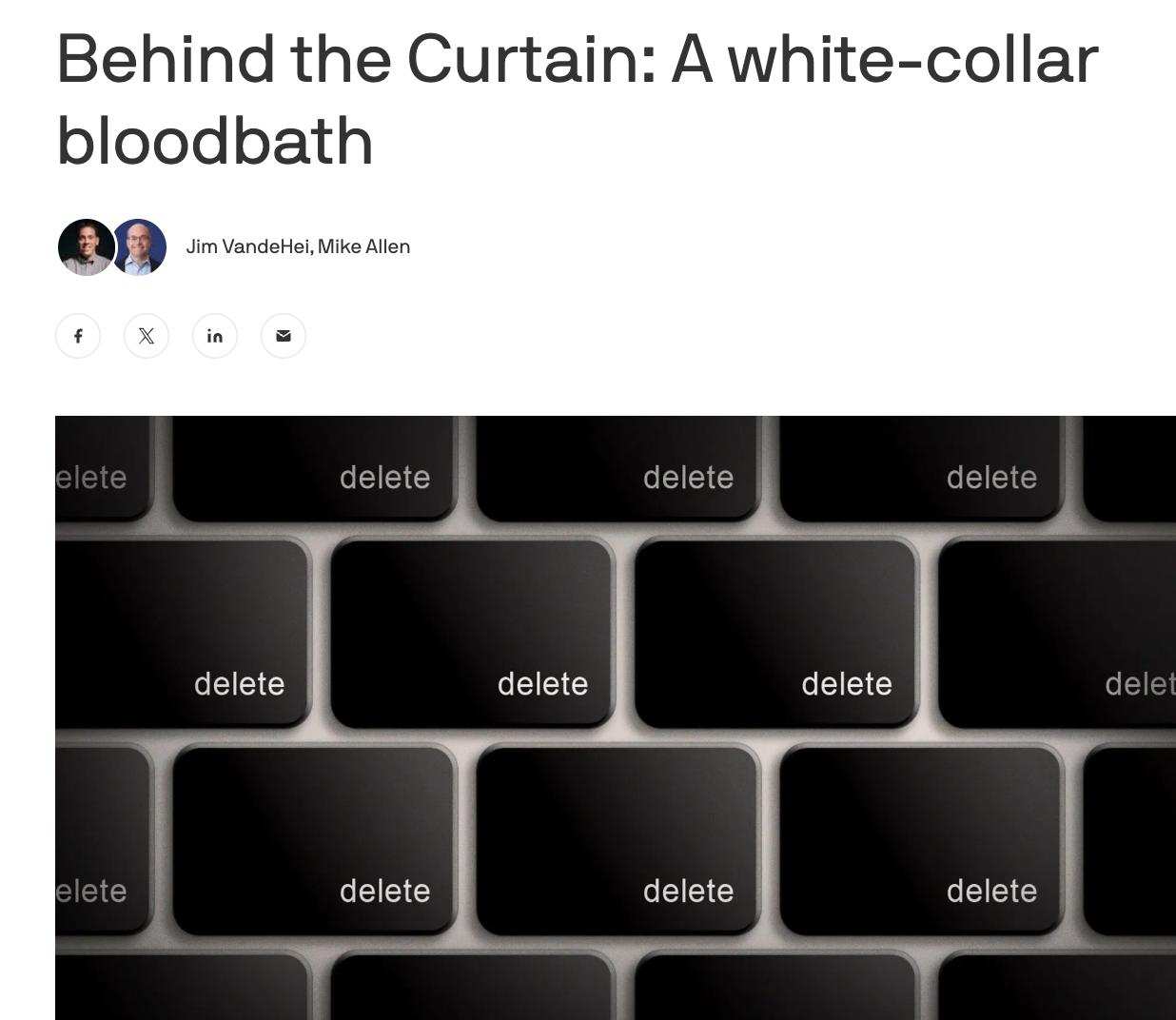 По его словам, «грядет массовое сокращение рабочих мест в сфере технологий, финансов, права, консалтинга и других „белых воротничков“, особенно на должностях начального уровня».