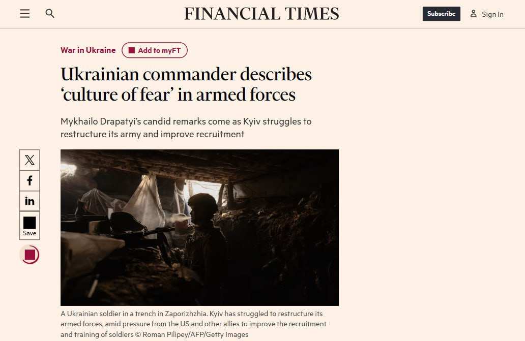 Критика со стороны представителя высшего командного состава прозвучала в тот момент, когда Киев пытается реорганизовать ВСУ под давлением союзников, требующих улучшить набор и подготовку солдат, пишет газета.