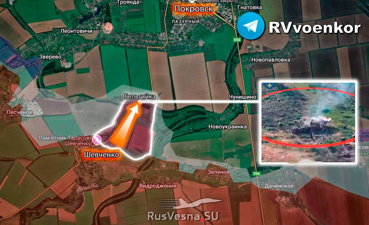 «Русские захватили н. п. Шевченко (Покровское направление), и продвинулись северо-восточнее, дойдя до Бельгийки», — с опозданием признают и украинские военные аналитики.