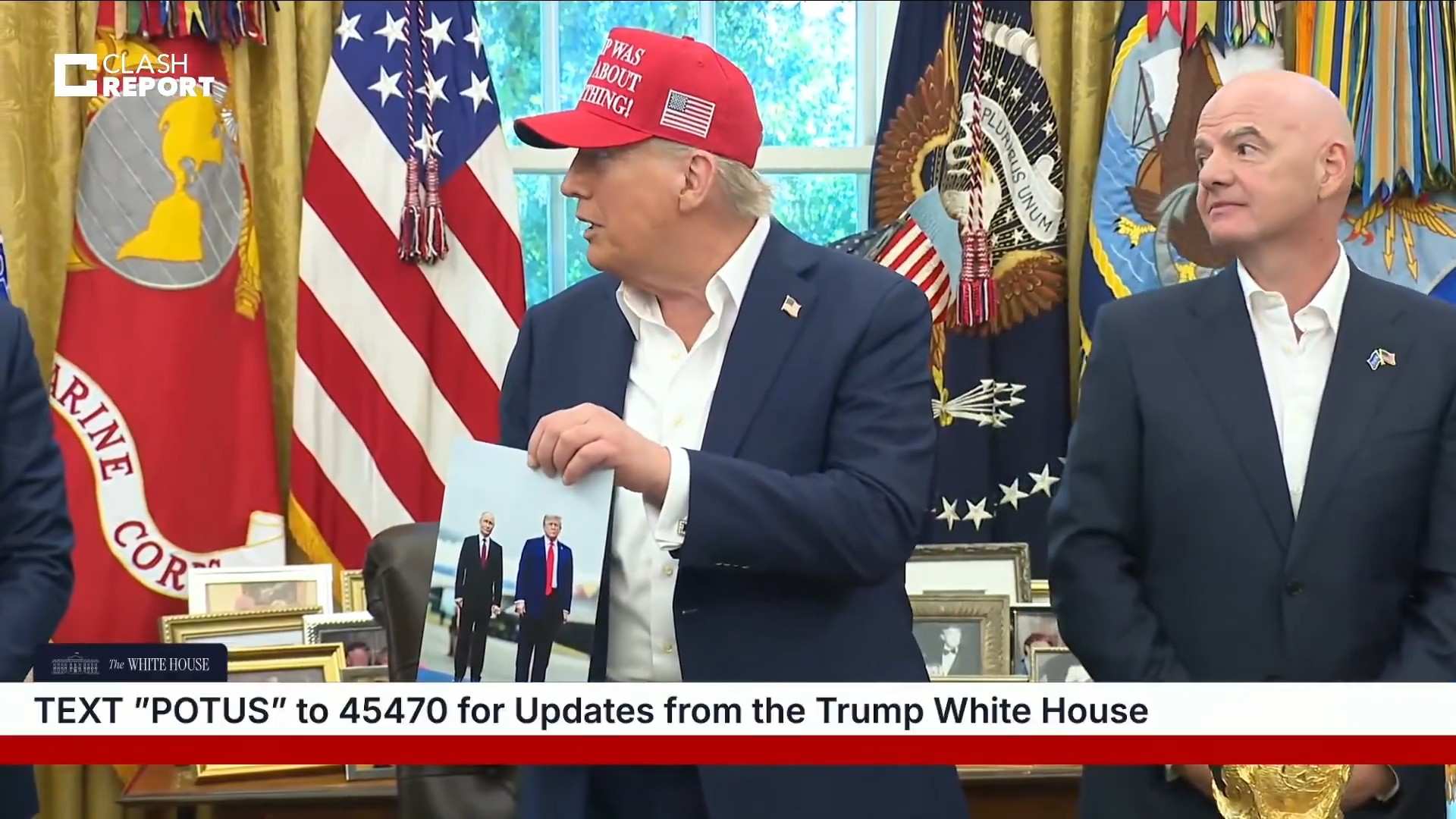 Трамп продемонстрировал совместную фотографию с Путиным и выразил надежду, что президент России будет на Чемпионате мира по футболу в 2026 году, который пройдёт в США, Канаде и Мексике.