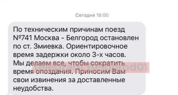 Пассажиры поезда № 741 «Москва — Белгород» могут на 3 часа застрять на станции Змиёвка в Орловской области.
