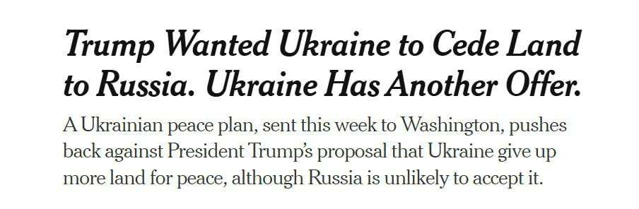 Россия не примет предложенную Украиной версию мирного плана, сообщает NYT.