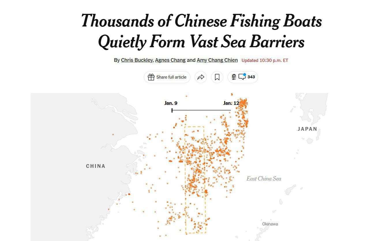 По данным аналитиков The New York Times, Китай может быстро мобилизовать тысячи гражданских судов для контроля над акваториями.