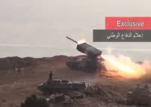 В сирийских СМИ появилось видео применения армией САР российской тяжелой огнеметной системы залпового огня ТОС-1А «Солнцепек», поступившей на ее вооружение, в целях борьбы с боевиками «Исламского государства» (ИГ)*.