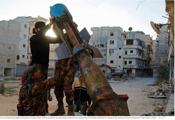 Photo depicing FSA fighters was published at the same resorce, the caption reads: «FSA fighters prepare a locally-made mortar lancher during clashes with forces loyal to Syria's President Bashar al-Assad on the Amerya front in Aleppo, 5 Nov. 2014».