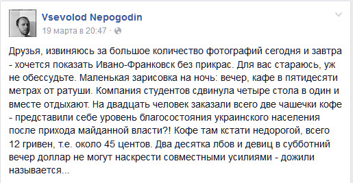 Писатель и публицист Всеволод Непогодин на днях побывал в Ивано-Франковске и поделился впечатлениями о поездке на своей странице в Facebook. Представляем вашему вниманию этот занимательный фоторепортаж с искрометными комментариями автора.