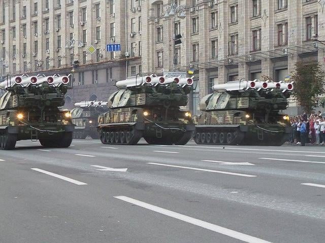 Как показала состоявшаяся в Киеве репетиция военного парада ко Дню независимости, Порошенко решил показать всю мощь ВСУ и вывел на Крещатик образцы своей новейшей техники (советского образца, разумеется). В их числе — шесть зенитно-ракетных комплексов (ЗРК) «Бук-М1».